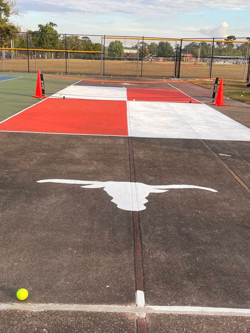 The FBMS, Oak Forest, and Tanglewood communities have the opportunity to fund the painting of college logos on the FBMS tennis courts. These annual sponsorships are coordinated with the Tennis Booster Club.